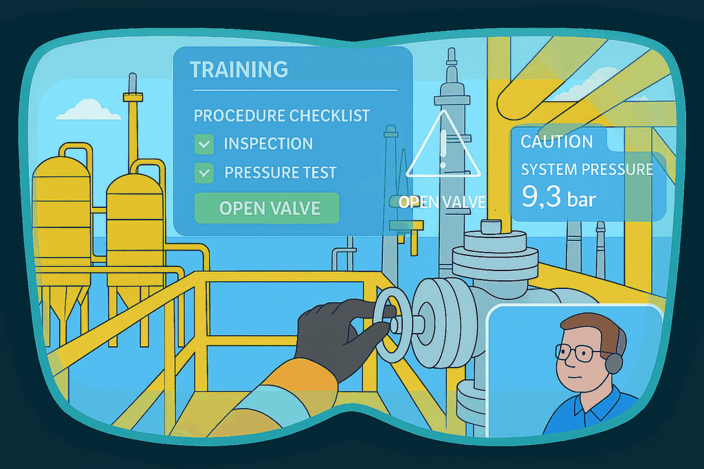 Traditional training often requires experts to be physically present — a challenge in an industry spread across offshore rigs, refineries, and remote sites. AR glasses change this dynamic completely.